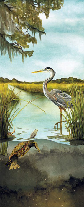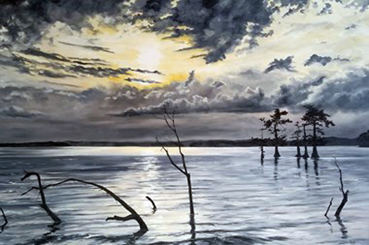 Other Waterscapes award winners include Second Place winners, Hunter Jay for his acrylic on canvas, “Tranquility” and Stephen Baumbach for his photograph on plexiglass, “Foam Fly #4.” Third Place awards were given to Susan Allen for her oil on canvas, “Fripp Island” and Peter Shepherd for his photograph, “Solar Blast.”